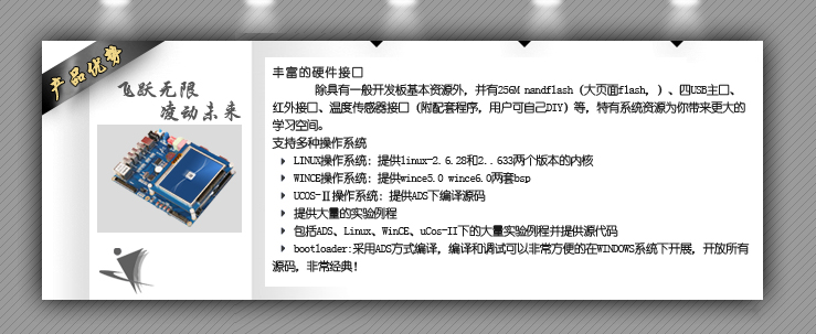 - 提供包括ADS、Linux、WinCE、uCos-II下的大量實驗例程并提供源代碼
